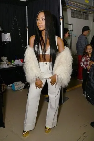 तब हमारे पास नोरमनी कोर्डेई हैमिल्टन ने अपनी गहरी दरार दिखाई। ब्लैक सेलेब ने न्यूयॉर्क शहर में Z100 की जिंगल बॉल 2018 में एक सफेद टॉप पहना था।